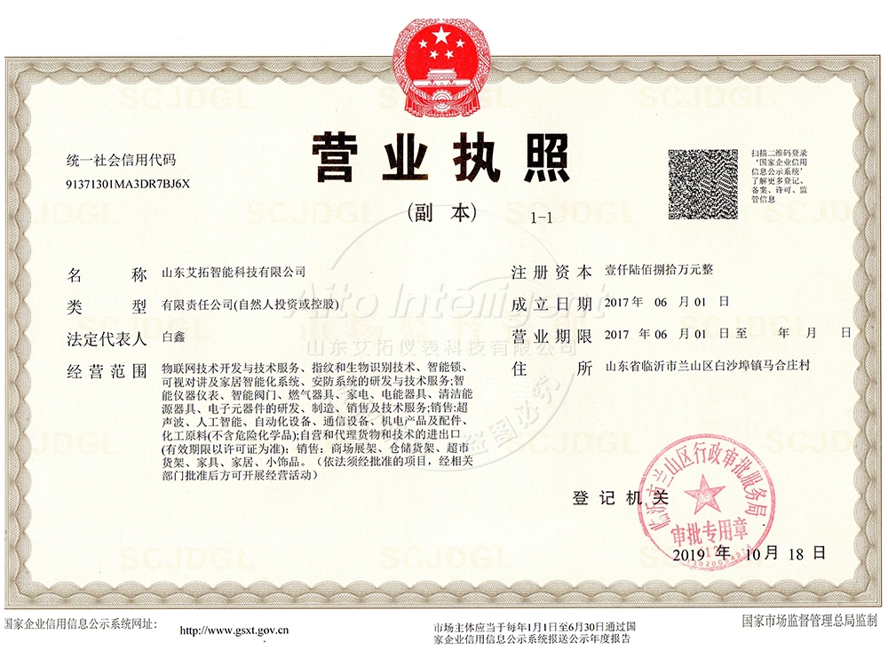 山東艾拓智能科技有限公司是以設計、研發(fā)、生產、銷售、服務為一體的綜合性新型企業,我們一直致力于生產智能水表、智能電表、智能燃氣表、超聲波熱量表等四大系列50余款產品,公司注冊資金1680萬元,占地6000余平。